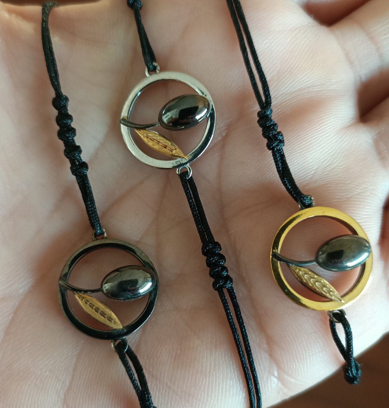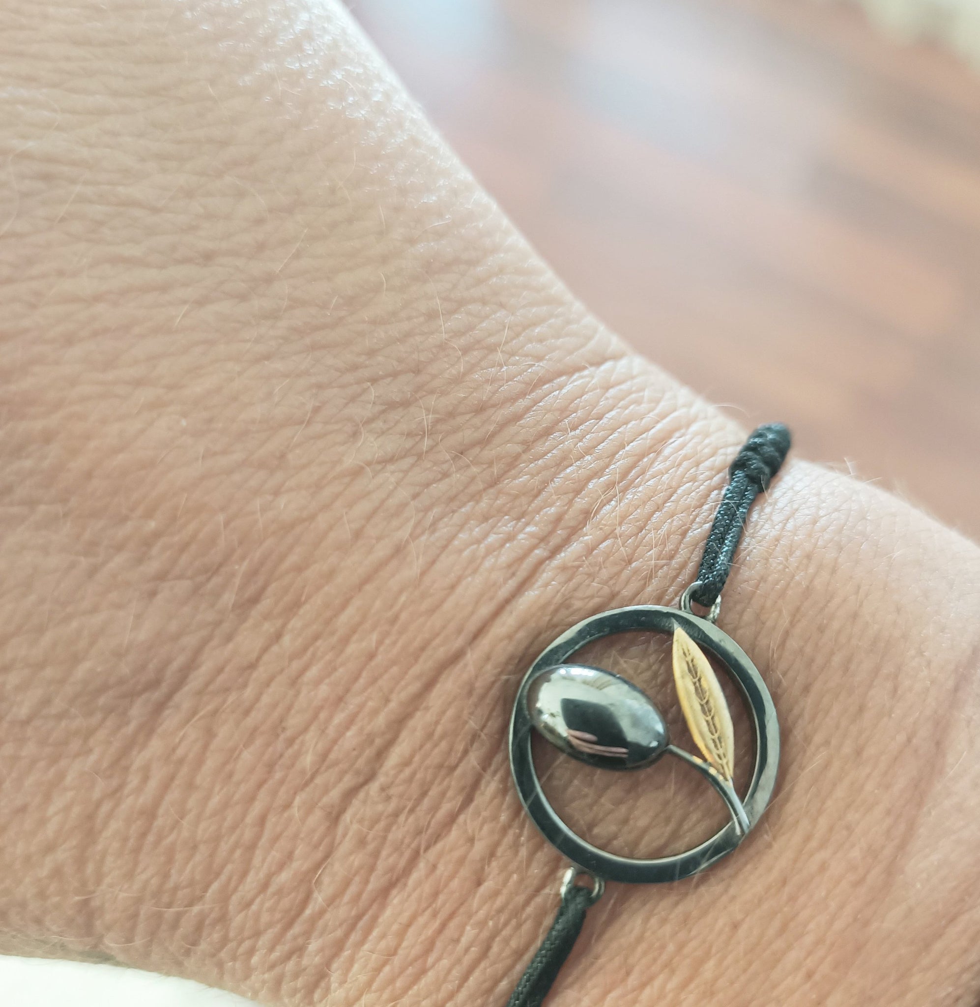 925K Gümüş, altın kaplama - siyah Rodyum kaplı. Ayarlanabilir makrome örgülü.
