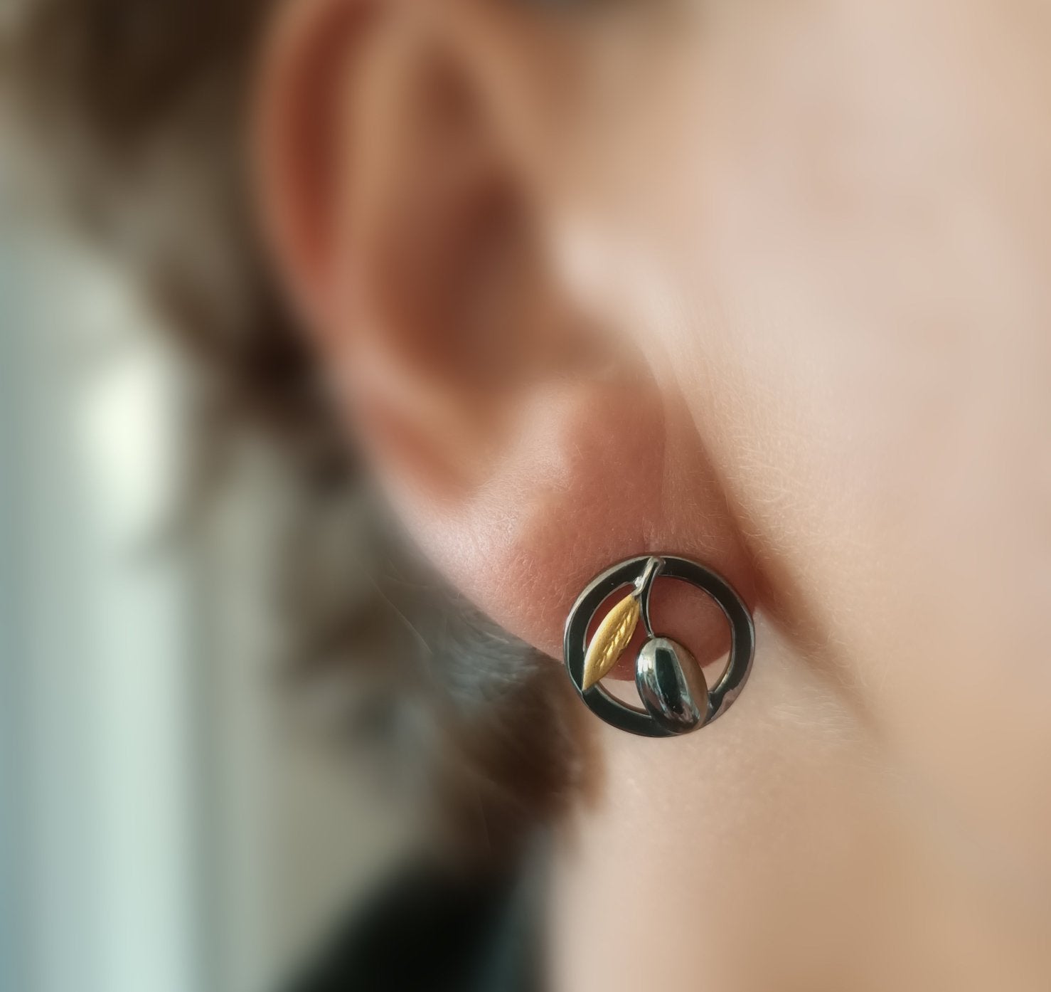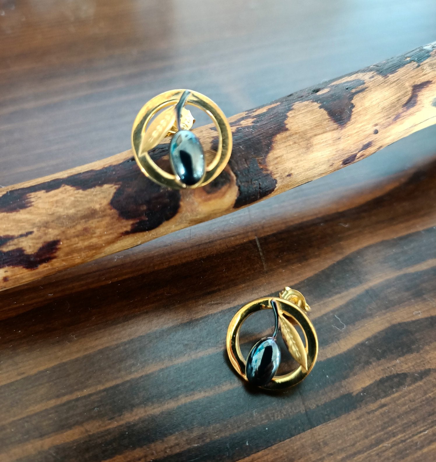 925 ayar gümüş, siyah Rodyum kaplı 1.2 cm çerçeve içinde, pimli küpe